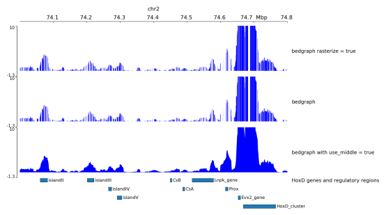 pyGenomeTracks旨在產生高度可定制的高質量基因組瀏覽器軌道。目前,可以繪制:
