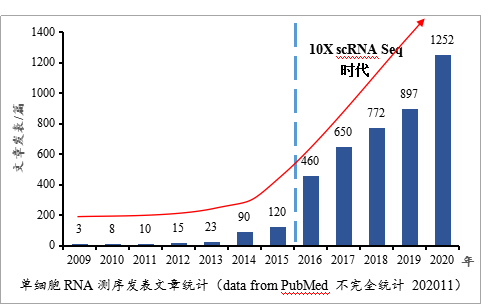 單細(xì)胞測序技術(shù)自2009年問世以來多次被Nature、Science、Nature Method等學(xué)術(shù)期刊評價為年度重點技術(shù),因為單細(xì)胞技術(shù)可以彌補(bǔ)混合測序籠統(tǒng)地對腫瘤組織和微環(huán)境細(xì)胞進(jìn)行基因分析(bulk phase sequencing)等缺陷,能夠√確到單細(xì)胞水平,是生命科學(xué)領(lǐng)域研究一大利器。但在2015年以前并沒有得到廣泛應(yīng)用,源于技術(shù)無法做到高通量檢測、成本較高。隨著技術(shù)的發(fā)展和革新,F(xiàn)luidigm公司的C1平臺、BD公司的Rhapsody平臺以及10x Genomics平臺等技術(shù)的出現(xiàn),特別是2016年10x Genomics商業(yè)化平臺橫空出世,徹底降低了單細(xì)胞測序的成本門檻,使得單細(xì)胞測序技術(shù)能被廣泛應(yīng)用于基礎(chǔ)科研和臨床研究,特別是對于癌癥早期的診斷、追蹤以及個體化治療具有重要意義,引領(lǐng)新一輪生物醫(yī)學(xué)領(lǐng)域的技術(shù)革命。