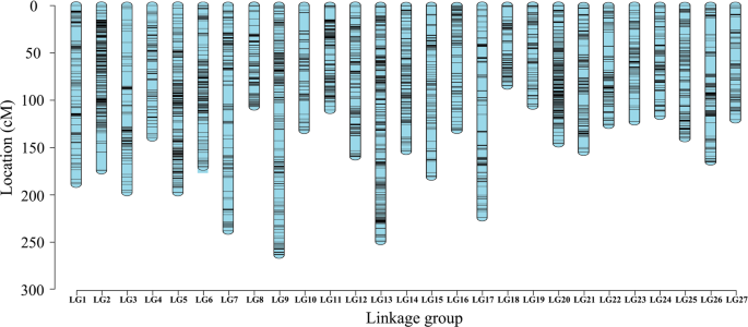 遺傳圖譜(Genetic map),是基于全基因組重測(cè)序技術(shù)或簡(jiǎn)化基因組測(cè)序技術(shù),對(duì)某物種家系樣本進(jìn)行測(cè)序,利用生物信息學(xué)方法,開(kāi)發(fā)SNP分子標(biāo)記,計(jì)算標(biāo)記間的遺傳連鎖距離,繪制高密度遺傳圖譜。利用遺傳圖譜,主要可以進(jìn)行QTL定位,比較基因組,輔助基因組組裝等科研工作。本研究報(bào)道了利用百邁客SLAF測(cè)序技術(shù),對(duì)菊花F1群體測(cè)序并構(gòu)建高密度遺傳圖譜,用于菊花花型等性狀的QTL定位及候選基因鑒定的研究。