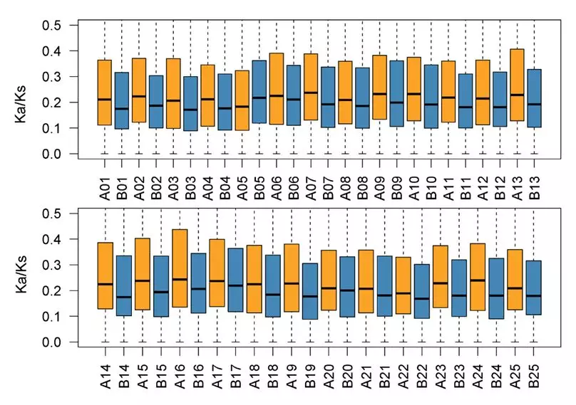 多倍體物種中,兩個亞基因組(同源基因組)所受到的選擇壓力往往不同:某亞(同源)基因組經(jīng)歷更強的純化選擇,另一個則經(jīng)歷較寬松的選擇,同源多倍體中可能同樣有這種現(xiàn)象。