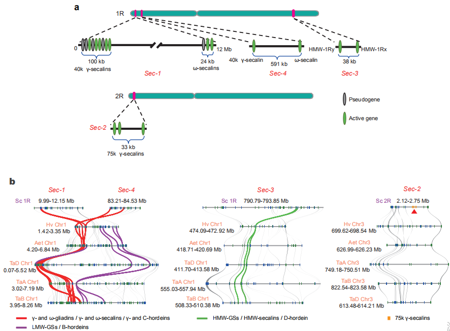 與小麥和大麥相似,黑麥在胚乳組織中積累了豐富的儲存蛋白SSPs。作者利用威寧基因組組裝技術對黑麥SSP基因座進行了分析。
