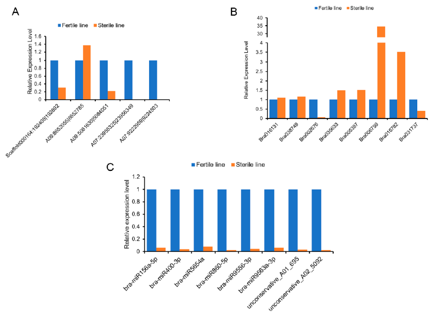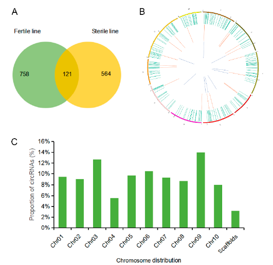 在以往的研究中,CircRNA作為內源非編碼RNA的一員,被認為具有miRNA海綿和競爭性內源RNA(ceRNA)功能。關于CircRNA在雄性不育和花藥發育中研究較少,因此作者在油菜中構建了細胞質雄性不育系(CMS),對不育系和可育系花蕾進行全轉錄組測序,揭示了油菜花藥發育中新的circRNA–miRNA–mRNA調控網絡,為進一步研究CircRNA和miRNA在花藥發育中的功能提供了一定的基礎。