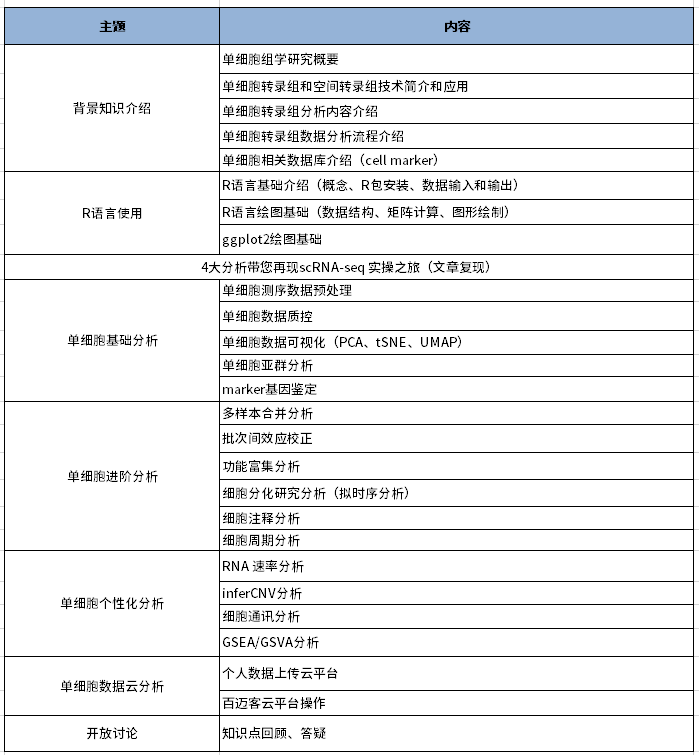 細胞和空間組學技術的快速發展正在開啟生命科學的時空多維新時代,為復雜疾病的細胞異質性研究提供新視角,引領了生物學從“時間”維度走向“空間”維度,廣泛應用于動植物生長發育、腫瘤精準治療研究等方向。為了促進單細胞數據挖掘和分析,百邁客特開展的單細胞數據分析課程,將為您呈現細胞分群、細胞分化研究、marker基因鑒定等分析內容,幫助研究者實現了單細胞數據更快、更準、更高的分析轉化。
