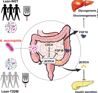 通過對βCDCA對胰島素分泌的可能作用的研究發現,A. muciniphila?可能通過降低腸道中βCDCA?的水平來刺激胰島素分泌。