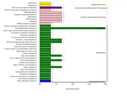 在KEGG富集中縱軸代表路徑,橫軸代表注釋到的基因數目