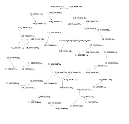 主要主要是基STRING數據庫提取目標基因集的互作關系。對于數據庫中未收錄信息的物種,使用BLAST軟件,將目的基因與數據庫中的蛋白質進行序列比對,尋找同源蛋白,根據同源蛋白的互作關系對構建互作網絡。構建完成的蛋白質互作網絡可導入Cytoscape軟件進行可視化。