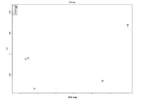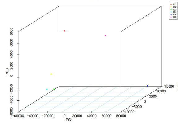 PCA分析橫坐標代表著第一主成分,縱坐標代表第二主成分,可以根據圖看出在第一主成分方向上樣本的距離越近,說明它們的主成分越相近,相關性越高。
