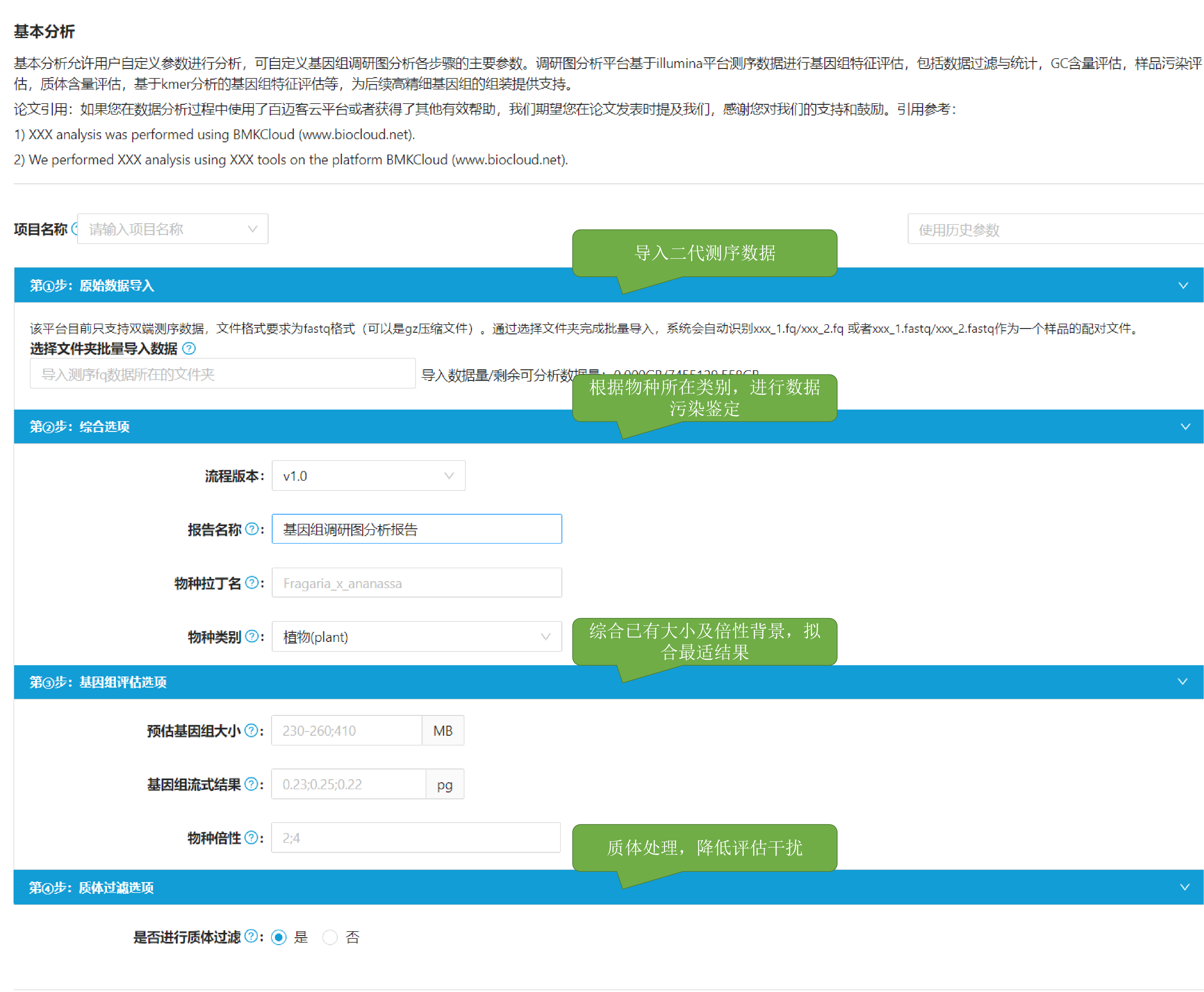 b.為了更好區分所分析項目,可自主填寫報告名稱和物種拉丁名(選填)。動植物材料選取過程中易受到微生物或其他生物污染,因此通過選擇分析物種所在類別,進行應數據庫比對判斷污染情況。物種污染程度為材料可用性提供重要依據。