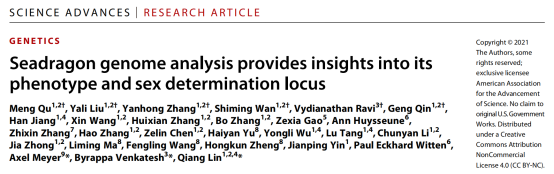 該研究通過雌雄性海龍基因組的破譯,結合重測序分析、轉錄分析、比較基因組分析等研究揭示了海龍科物種性別決定基因的產(chǎn)生和演化歷程,為海洋魚類的環(huán)境適應性進化研究提供了重要理論依據(jù)。