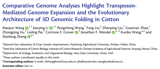 本次研究首次公布了棉屬中二倍體圓葉棉基因組,并對亞洲棉和雷蒙德氏棉基因組進行了升級,解析了轉座子活動驅動的基因組大小進化特征,從轉座子擴增和染色質空間結構角度為棉花物種進化提供新的見解,為植物中轉座子活動介導的轉錄調控進化研究提供參考。