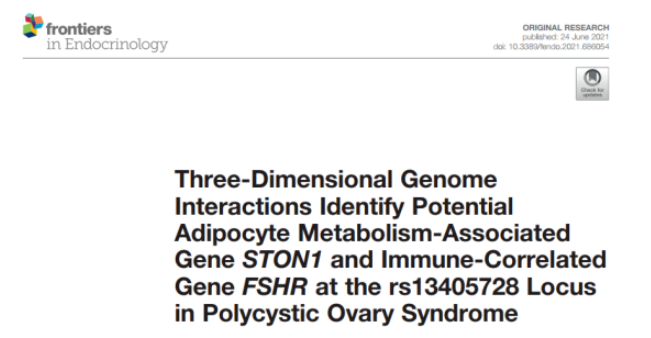 文獻名稱:Three-Dimensional Genome Interactions Identify Potential Adipocyte Metabolism-Associated Gene STON1 and Immune-Correlated Gene FSHR at the rs13405728 Locus in Polycystic Ovary Syndrome