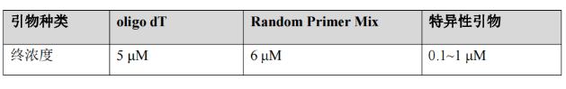 逆轉錄引物一般包含三種:oligo dT,Random Primer Mix和特異性引物??蛻艨梢愿鶕€人需求進行選擇。