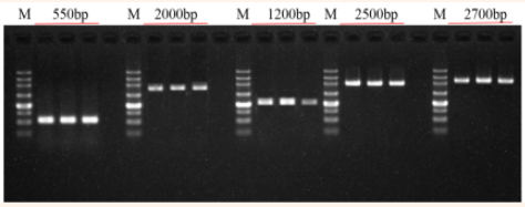 實驗數據:以cDNA為模板,進行PCR擴增的凝膠電泳圖