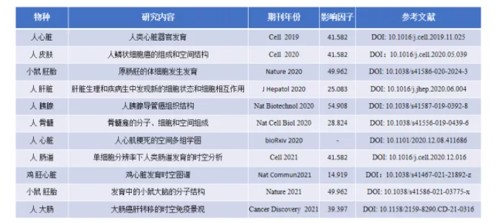 ? ? ? ? ? 空間轉錄組自從登上2020年Nature Methods 年度技術的封面以來,該技術一直都有重量級的文獻報道,并且刊登都是高分國際期刊雜志,頻繁登臨Cell、Science、Nature等高分期刊,據不完全統計利用10x visium 空間轉錄組技術已發表60+文獻,這些文獻平均影響因子15分左右,可見該技術在生物醫學領域代表目前科學技術應用,空間轉錄組從空間維度闡述轉錄組基因表達在不同組織區域的異質性,甚至揭示單細胞分辨率空間上細胞異質性,在生長發育(育種)、抗逆應激(生物脅迫和非生物脅迫)、免疫反應和致病機理、生物進化、輔助腫瘤精準治療、性別分化等幾個領域發揮著越來越重要的作用。