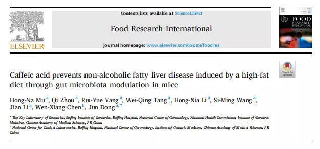 中文名稱: 咖啡酸通過調節小鼠腸道菌群預防由高脂肪飲食引起的非酒精性脂肪肝