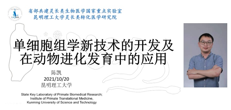 昆明理工大學省部共建非人靈長類生物醫學國家重點實驗室陳凱教授帶來的報告題目是單細胞組學新技術的開發及在動物進化發育中的應用。陳老師團隊通過結合單細胞功能組學技術和經典發育生物學方法,成功繪制了完整的脊索動物胚胎發育單細胞轉錄譜系以及對應的調控網絡草圖,在此基礎上發現了多巴胺神經元命運決定的保守因子(Meis和Ptf1),并開發出了基于CUT&Ta研究多個目的蛋白-DNA互作的新方法(Multi-CUT&Tag),結合10x多組學平臺,該方法能有效地整合細胞類型特征和染色質的信息,有利于獲得更加清晰的細胞譜系和染色質特征,有助于解析細胞命運決定背后的調控機制。