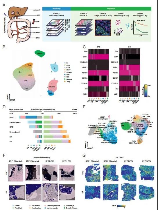 1、單細胞和空間轉錄組學繪制可切除CRLM中的免疫細胞多樣性