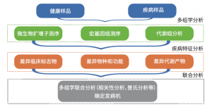 基于以上3篇文章我們可以發現,首先可以選擇價格較低,周期較快的微生物多樣性測序,初步了解不同處理組樣本微生群落組成的變化,得到差異的物種,若需要進一步在功能層面上進行研究,可進行宏基因組測序,探究功能的組成和變化規律,同時通過代謝組分析(非靶,靶向,廣靶等)得到代謝組的組成和差異,最后通過微生物+代謝聯合分析,全面的解析相關生物學問題,深入探究疾病發展機理,微生物與動植物互作機制等(如下圖所示)。