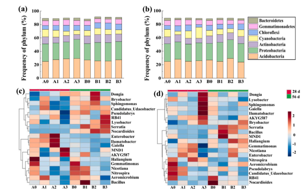 該論文通過16S rRNA基因測序、qPCR、酶活檢測以及IBR評估等方法,研究了兩種除草劑(氯酯磺草胺和雙氯磺草胺)不同濃度下所造成的土壤微生物、土壤中酶活力變化。結(jié)果表明,不同濃度的除草劑對土壤微生物群落組成造成了不同程度的影響,且兩種除草劑影響后的土壤微生物組成顯著不同。兩種除草劑對土壤內(nèi)氮循環(huán)及碳循環(huán)相關(guān)功能基因均產(chǎn)生影響,整體而言,雙氯磺草胺產(chǎn)生的效果更顯著。兩種除草劑對土壤中固氮相關(guān)酶活均有促進(jìn)作用,使用綜合生物標(biāo)志物響應(yīng)法(IBR)對他們的環(huán)境毒性進(jìn)行了比較與評估,發(fā)現(xiàn)雙氯磺草胺的環(huán)境毒性高于氯酯磺草胺。