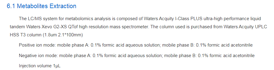 LC-MS是指液相色譜-質(zhì)譜聯(lián)用技術(shù),該技術(shù)對(duì)待測(cè)組分的揮發(fā)性和熱穩(wěn)定性沒(méi)有要求,不需要繁瑣的衍生化步驟,樣品前處理簡(jiǎn)單,檢測(cè)溫度低,分離物質(zhì)快速、高效,是目前代謝組學(xué)研究中常用的分析技術(shù)。