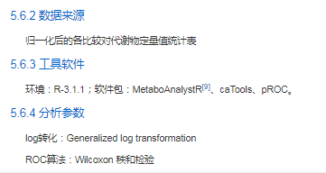 ROC曲線 (receiver operating characteristic curve) 是一種常用來(lái)篩選評(píng)估生物標(biāo)記物的分析方法[9]。AUC (Area under the curve) 是衡量ROC曲線非常有用的度量。AUC始終在0.5(兩個(gè)類在統(tǒng)計(jì)上相同)和1.0(有一個(gè)閾值可以實(shí)現(xiàn)類之間的完美分離)之間,越接近1,物質(zhì)的在對(duì)照組和實(shí)驗(yàn)組的分離就越明顯(即為潛在的生物標(biāo)記物)。一般來(lái)說(shuō),組內(nèi)生物學(xué)重復(fù)>15時(shí),ROC曲線才有足夠的點(diǎn)繪制折線,才會(huì)體現(xiàn)出較大意義。對(duì)篩選出的各組差異代謝物單獨(dú)進(jìn)行ROC分析。
