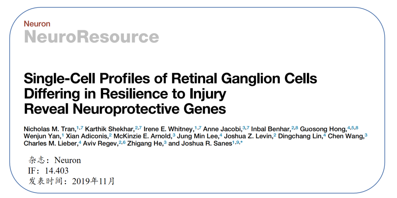 中樞神經系統(CNS)無論是急性(例如創傷性損傷)還是慢性(例如神經退行性疾?。┑膿p傷,都會導致不可逆轉的神經元損害甚至死亡,而那些存活下來的神經元有的能長出新的軸突并重新建立突觸連接。該研究通過單細胞轉錄組揭示了與視神經擠壓 (ONC)后小鼠視網膜神經節細胞(RGC)的選擇性恢復能力相關的差異表達程序。