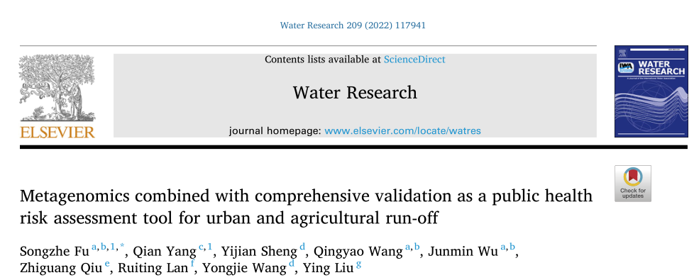 2021年12月4日,大連海洋大學海洋科學與環境學院在JCR Q1區期刊《Water Research》上發表了題為“Metagenomics combined with comprehensive validation as a public health risk assessment tool for urban and agricultural run-off”的研究論文,該論文提出了一個由病原體篩選、病原體基因分型和風險評估三個階段組成的公共健康風險評估流程:1)運用宏基因組測序、微流控芯片和qPCR對病原體進行篩選,2)多位點序列分型(MLST)或常規PCR進行病原菌分離和基因分型;3)對宏基因組數據的毒力基因進行致病性評估。