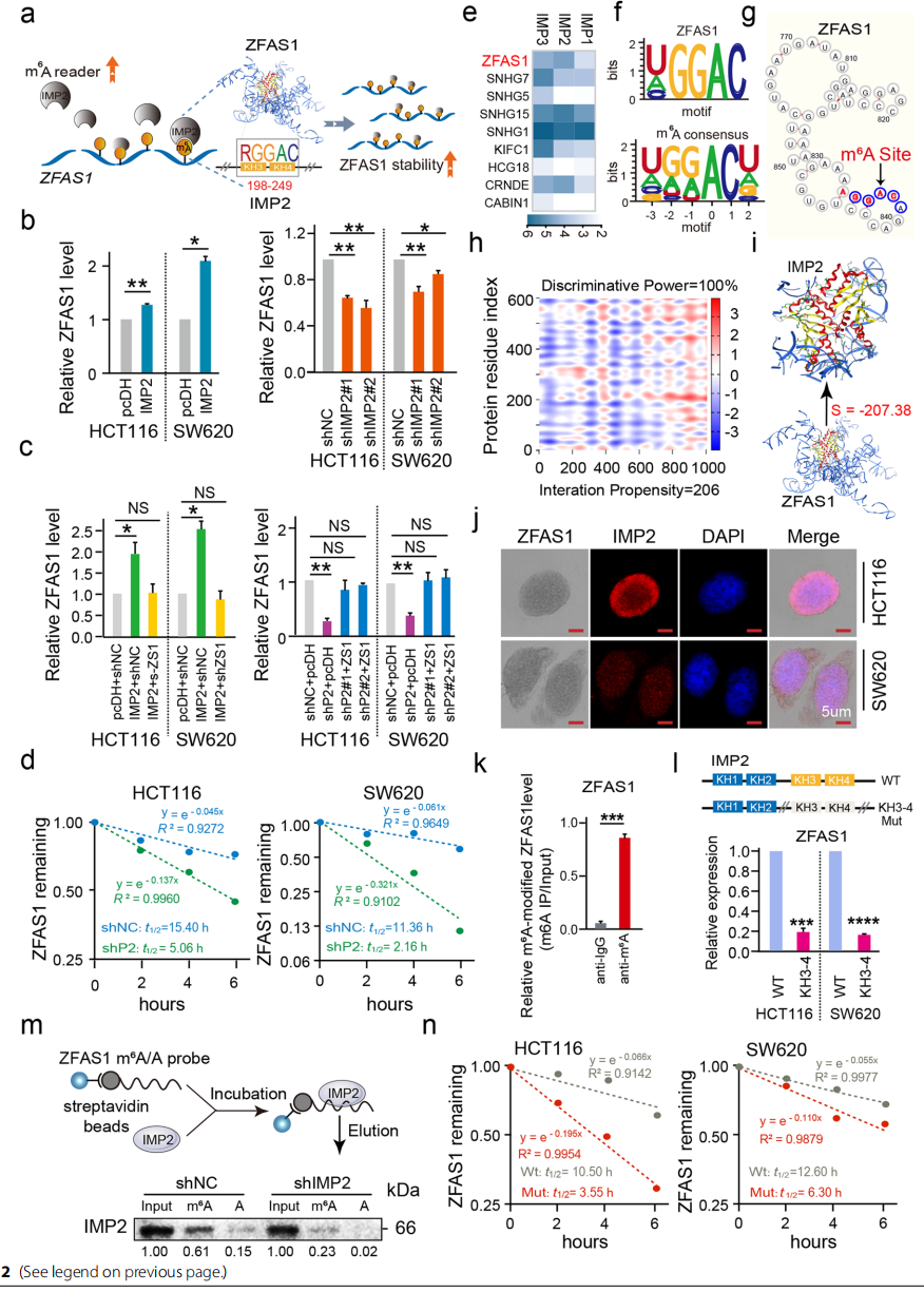 2、CRC細胞中IMP2通過直接與ZFAS1的m6A位點結合促進ZFAS1的穩定性