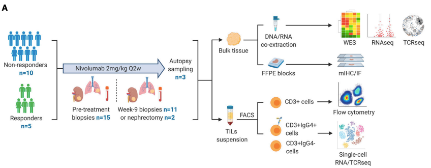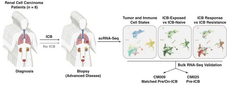 實驗材料:8例晚期腎細胞癌患者,5例ICB治療,3例未治療。