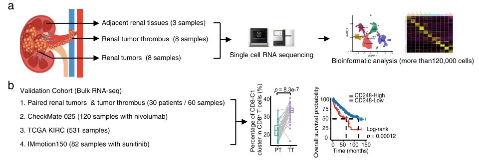 中文題目:單細胞轉錄組測序揭示腎癌和癌栓腫瘤微環境差異