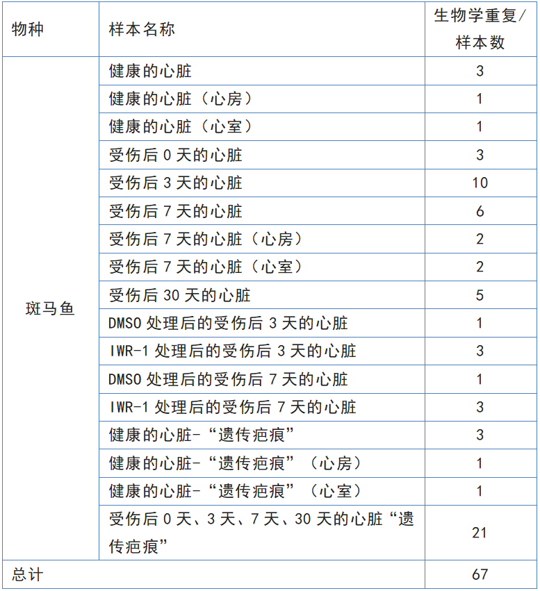 空間轉錄組(Tomo-seq):斑馬魚心房和心室一共100張切片,每張切片分別做RNA-seq