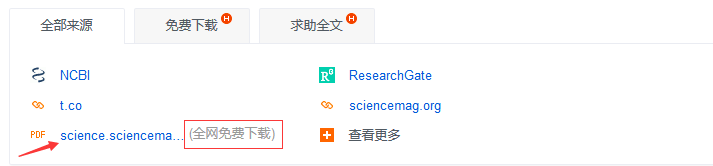 打開http://xueshu.baidu.com/,輸入文獻題目,回車,則出現文獻的詳細信息頁面,下拉會看到全部來源,點擊后面帶“全網免費下載”字樣的,跳轉至PDF下載界面,輕松獲得文獻。但是,多數情況下百度學術里面沒有免費的PDF下載資源,這時仍推薦sic-hub。