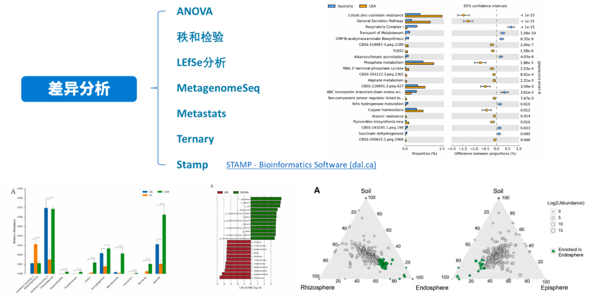 上篇介紹了關于群落結構整體間的差異分析,那么針對不同的處理,不同的環境條件下,究竟是哪些微生物對環境變化更加敏感,在處理組間表現出更顯著的差異,而這些微生物又是如何響應環境變化的,是否可以作為指示物種用于后續的實驗研究當中,這些就涉及到我們今天要講的組間差異顯著性分析,一起來看下: