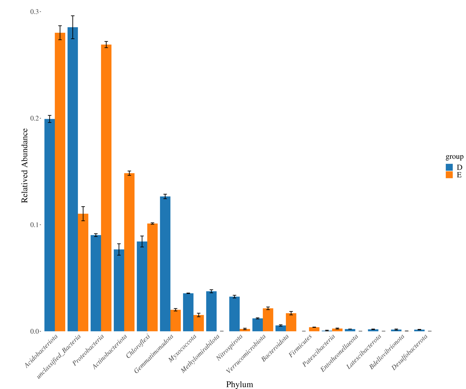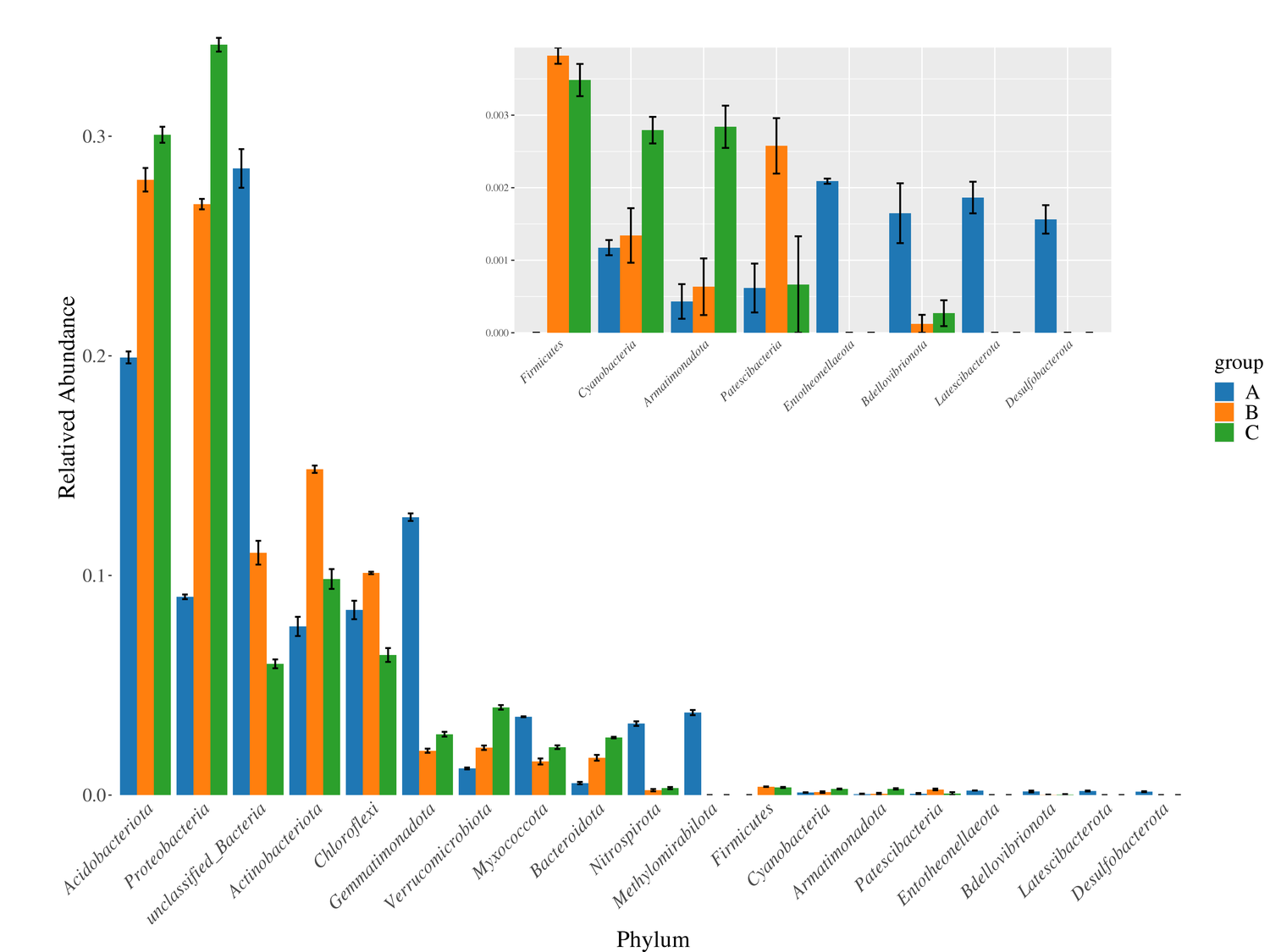 標志物組間豐度柱狀圖