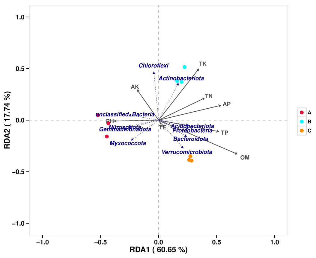 RDA/CCA分析:RDA(Redundancy analysis)/CCA(Canonical Correspondence analysis)是基于對應分析發展的一種排序方法,RDA分析基于線性模型,CCA分析基于單峰模型,主要用來反映菌群或樣品與環境因子之間的關系。根據物種分布變化,選擇最*的分析模型。