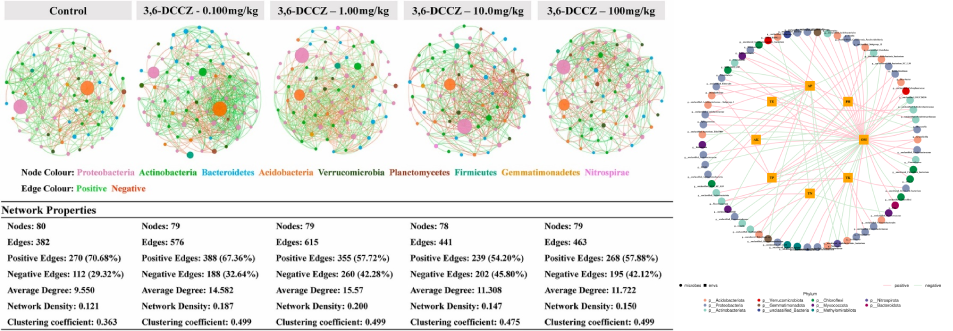 相關性網絡分析:網絡圖是相關性分析的一種表現形式,根據各個物種在各個樣品中的豐度以及變化情況,進行斯皮爾曼(Spearman )秩相關分析并篩選相應條件下的數據構建相關性網絡。基于網絡圖的分析,可以獲得物種在環境樣本中的共存關系,得到物種在同一環境下的相互作用的情況及重要的模式信息,進一步解釋樣本間表型差異的形成機制。