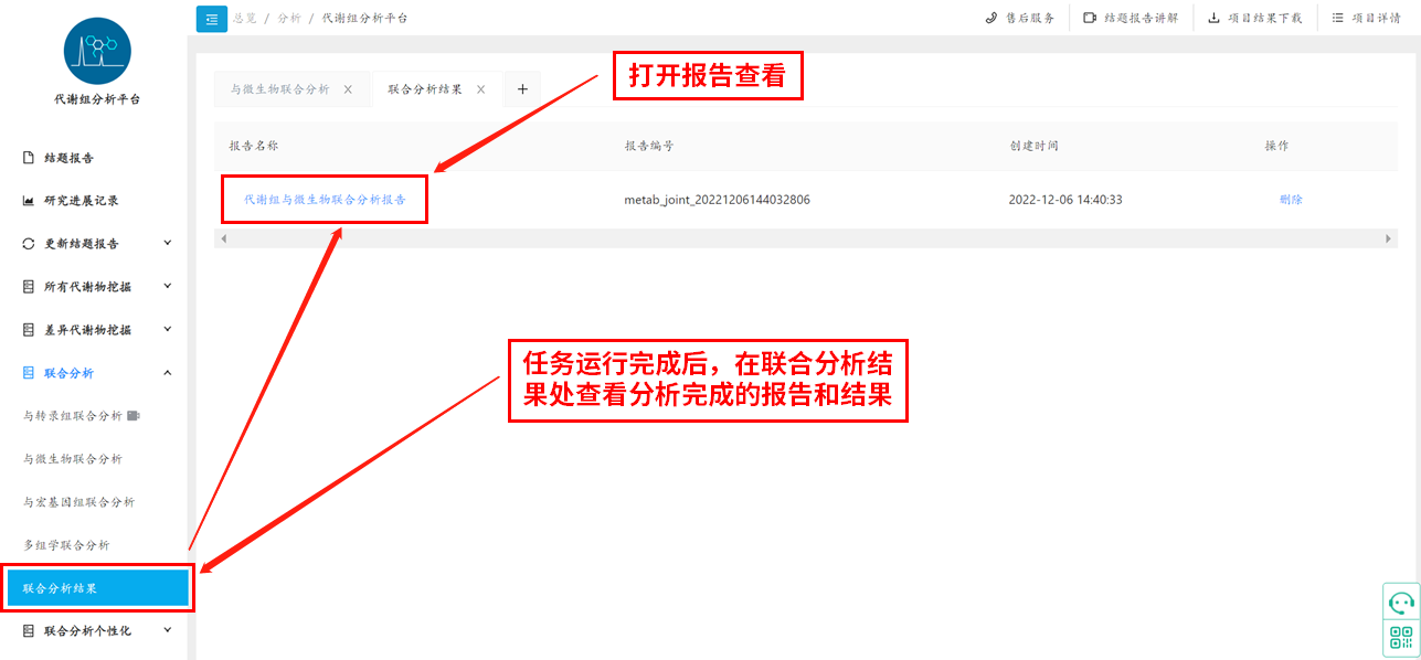 提交分析:等待分析完成獲得分析報告結果,一般任務運行周期1-2h。任務運行完成后,在聯合分析結果處查看分析完成的報告和結果,示例圖如下: