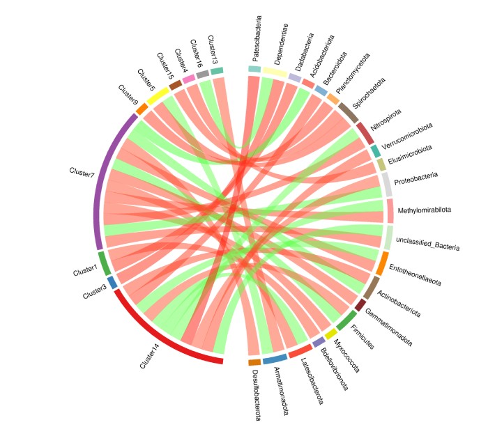 代謝物簇-微生物相關性和弦圖