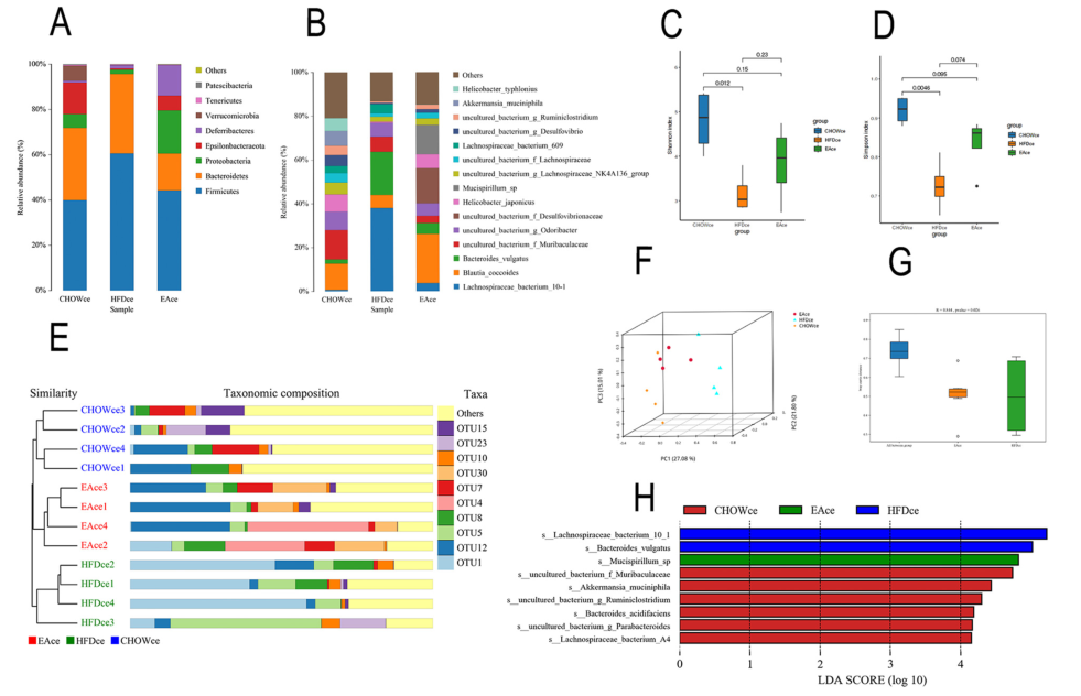 圖4 EA干預恢復了HFD喂養(yǎng)小鼠的腸道微生物群