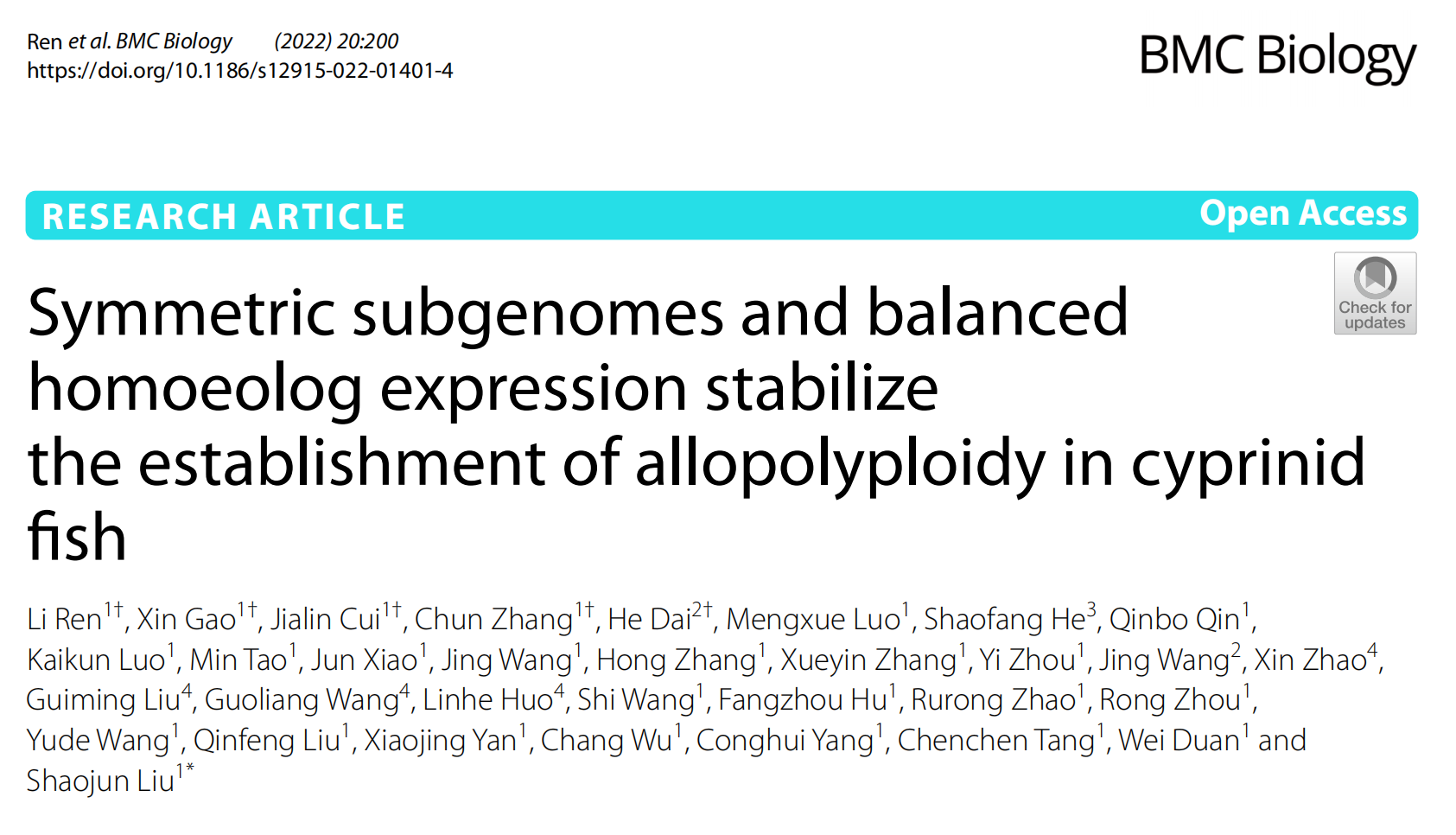 研究?jī)?nèi)容:構(gòu)建了高質(zhì)量的異源四倍體鯽鯉F22代基因組(2.95Gb)。與親本紅鯽和鯉比較,發(fā)現(xiàn)異源四倍體個(gè)體中200條染色體一半來(lái)自于紅鯽一半來(lái)自于鯉,同源染色體間存在重組交換現(xiàn)象。推測(cè)DNA修復(fù)和減數(shù)分裂重組等機(jī)制在異源四倍體鯽鯉品系形成過(guò)程中共同發(fā)揮作用。交個(gè)體中紅鯽和鯉來(lái)源基因在表達(dá)和DNA甲基化層面存在多種變化特征。本研究為后續(xù)進(jìn)一步揭示通過(guò)遠(yuǎn)緣雜交形成的其它可育品系的遺傳特性提供了重要的參考。