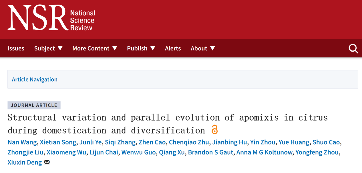 研究?jī)?nèi)容:山金柑 ( Fortunella hindsii) 是金柑屬的一種常綠野生果樹(shù),本研究利用山金柑品系Sy3-45為材料構(gòu)建了高質(zhì)量基因組和遺傳群體,實(shí)現(xiàn)了金柑屬無(wú)融合生殖關(guān)鍵基因的定位。結(jié)合柑橘不同屬材料的全基因組重測(cè)序數(shù)據(jù),進(jìn)一步解析了金柑屬和柑橘屬無(wú)融合生殖表型的平行進(jìn)化機(jī)制。該研究發(fā)現(xiàn),雜交起源的柑橘群體能夠通過(guò)無(wú)融合生殖來(lái)保持雜交優(yōu)勢(shì),并導(dǎo)致無(wú)融合生殖的關(guān)鍵MITE插入以雜合子形式存在,首次提出了無(wú)融合生殖在柑橘分化和馴化過(guò)程中的重要作用。