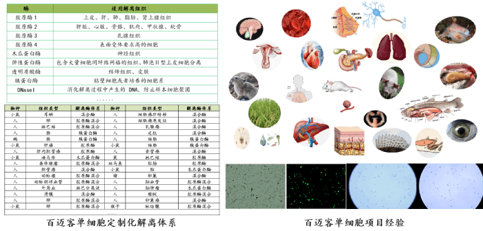 高質量的細胞懸液意味著真實且可重復的單細胞測序數據,因此細胞懸液制備對單細胞測序至關重要。由于不同細胞類型特性不同,需要根據不同樣本類型和研究目的選擇針對性的樣本制備方案。百邁客基于豐富的項目經驗,在標準SOP的基礎上不斷優化調整,量身定制專屬實驗方案,目前已累計成功制備250+種組織樣本類型,完成單細胞建庫樣本7000+例,單細胞懸液成功率高達98%。