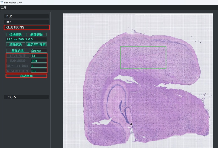 5)點擊“Clustering”,選取自己感興趣的分辨率,和適當的參數,然后點擊“啟動聚類”;