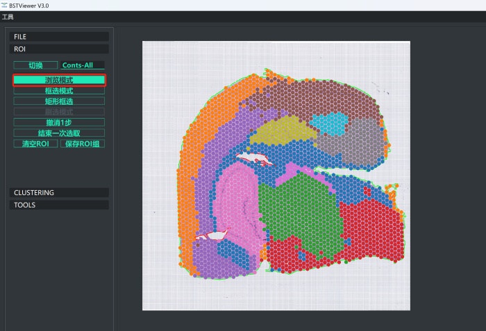6)最后得到框選到的感興趣區域的聚類結果,點擊“ROI”切換為“瀏覽模式”可以通