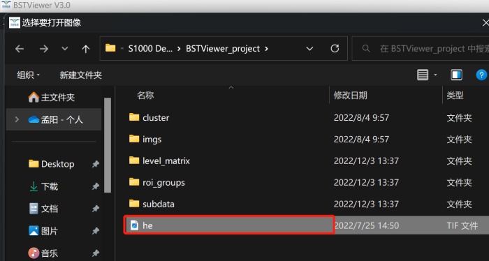 1)將官網下載到的BSTViewer_project文件夾數據(或者通過運行BSTMatrix 得到的BSTViewer_project 文件夾)存放到英文命名的文件夾之中;【包括各個級別分辨率矩陣文件,及BMChiper 或者官網下載的HE 染色圖片】可以同時在此文件夾下邊新建一個outdir 作為文件輸出路徑;