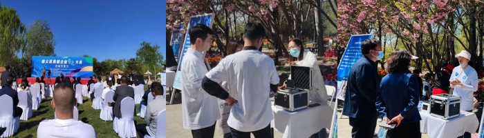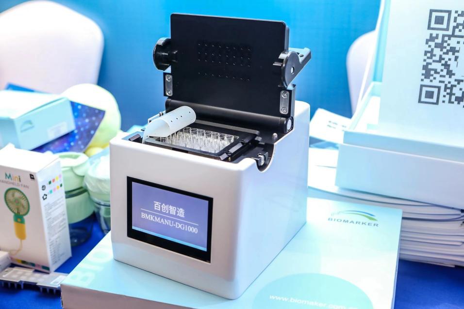 百邁客代表正在向參觀人員詳細介紹百創智造產品細節等
