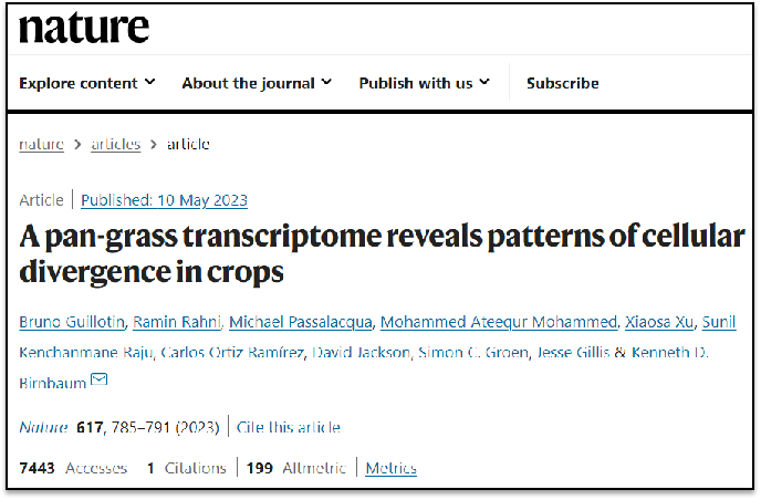 研究對三種草本作物–玉米、高粱和狗尾草的根進行了單細胞轉錄組測序。結果表明:部分細胞類型的轉錄組擁有更快的分化速度;全基因組復制事件提供了豐富的變異區域,促進了細胞類型的快速進化。細胞間保守的表達模式證明細胞類型進化能介導作物產生優良農藝性狀。