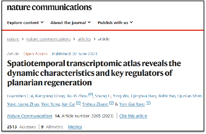 研究繪制了地中海渦蟲六個不同再生時期的空間轉錄組和單細胞轉錄組圖譜。從時空圖譜中鑒定到了能影響再生效率的新生細胞亞型及多個創傷相關的具空間特征的表達模式。時空關聯分析表明plk1等多個基因的缺失會導致渦蟲的再生能力失效。