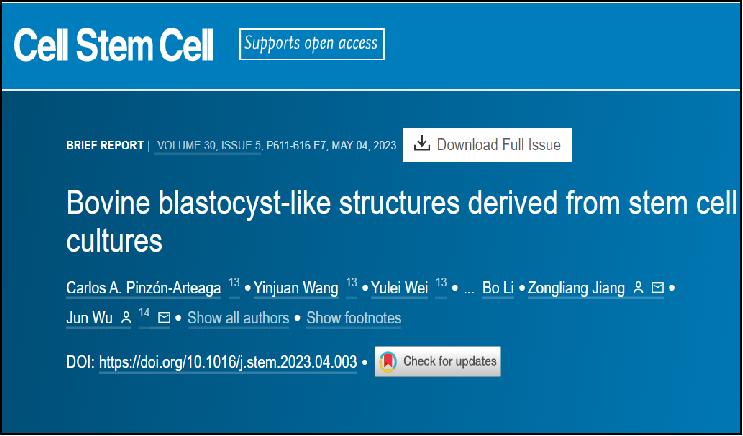 作者利用擴(kuò)展?jié)撃芨杉?xì)胞和滋養(yǎng)層干細(xì)胞構(gòu)建了牛的類(lèi)囊胚。模型。體外培養(yǎng)的結(jié)果表明該模型可以引發(fā)母牛對(duì)胎兒的發(fā)育識(shí)別。單細(xì)胞轉(zhuǎn)錄組的結(jié)果明確了該模型與囊胚的相似性,并利用軌跡分析解析了類(lèi)囊胚譜系發(fā)育分化的路徑。
