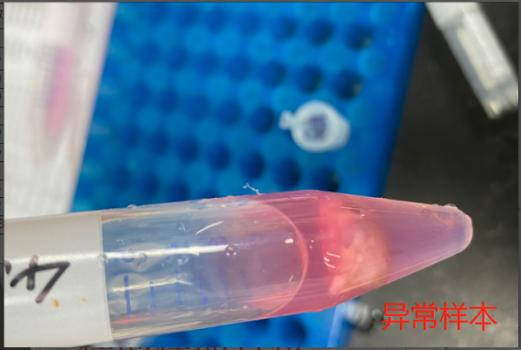 2) 震蕩混勻,常溫裂解 5 min 后,使用低溫離心機 12000g 離心 10min,將上清液轉至新的 2.0ml 離心管中(拍質控照片,方便核查),轉移至-80℃低溫保存,運輸時選擇干冰寄送。